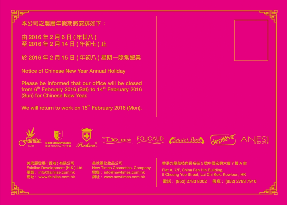 2016 農曆年假通知